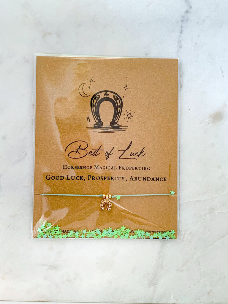 Best of Luck Horseshoe Charm Cord Carded Bracelet Giftable